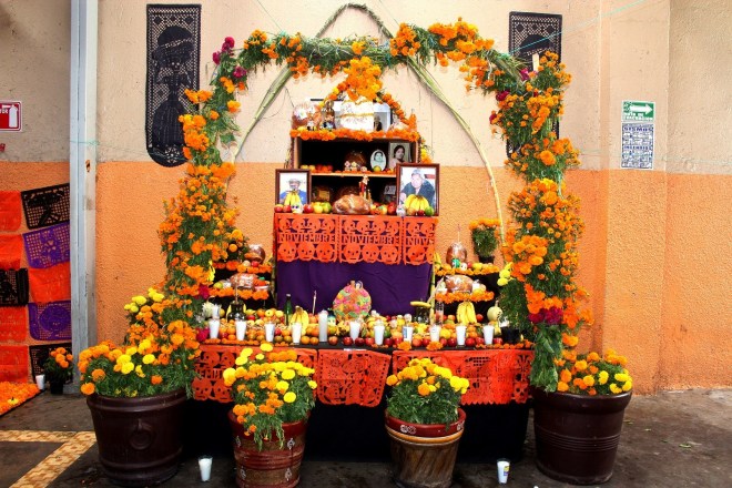 Por otro lado, en uno de los recorridos por los mercados realizados, por invitación del Ayuntamiento capitalino, el Cronista de la Ciudad de Oaxaca de Juárez, Jorge Bueno Sánchez, detalló que “los altares son sincretismos, la conjugación de la fe católica y las tradiciones mesoamericanas; en estos destaca la flor de cempasúchil que, en la lengua náhuatl significa Flor de 20 pétalos, y la cruz de la evangelización, representación de la fe católica, las cuales se fusionan en las ofrendas de muertos”.