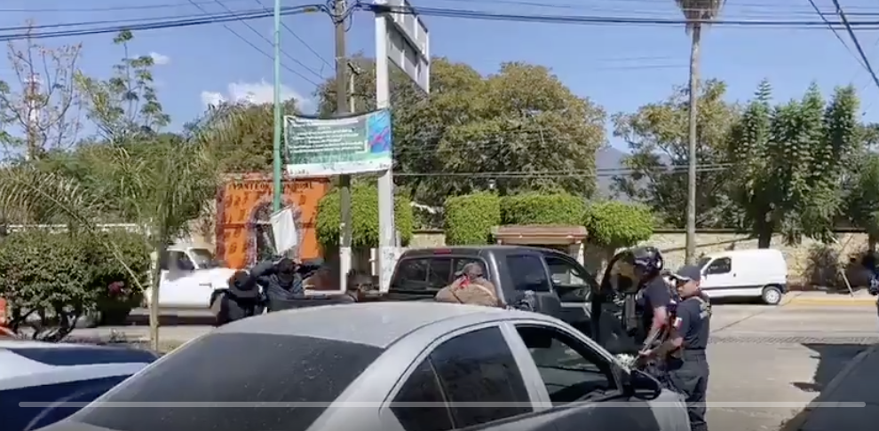 Balacera de Av. ferrocarril; elementos de la @Policia_GobOax detienen a 2 personas.