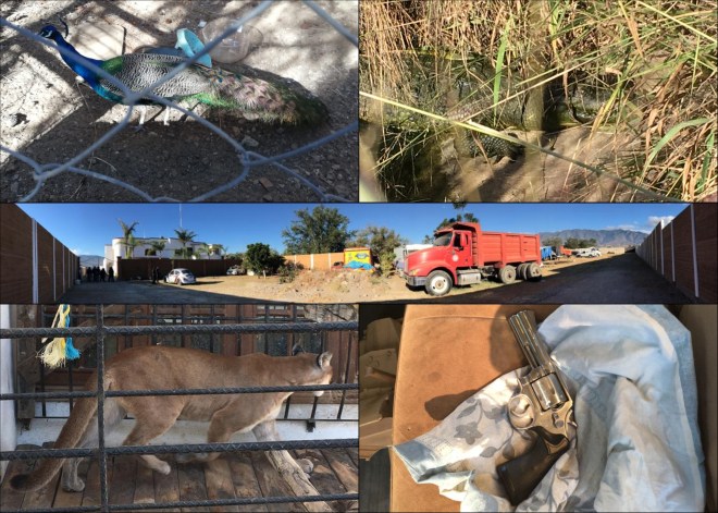 Asimismo, se aseguraron los siguientes animales: un puma, un cocodrilo, un búho y un pavorreal, los cuales se entregarán a las autoridades ambientales correspondientes.