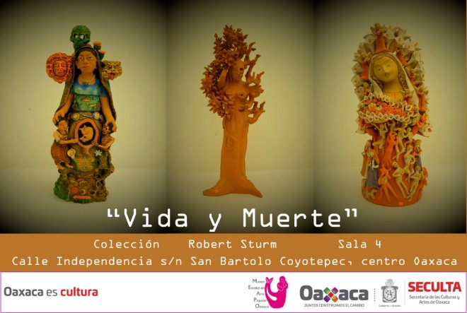 Así también, la Seculta invita a que asistan a las diversas exposiciones como la que se encuentra en el Museo Estatal de Arte Popular Oaxaca (MEAPO) en San Bartolo Coyotepec donde se exhiben tres muestras: “Tzompantli, la muerte en plata” en la sala uno, “Vida y Muerte, colección de Robert Sturm” en la sala cuatro y “Añoranzas” en la misma sala; todas estarán hasta el 30 de noviembre.